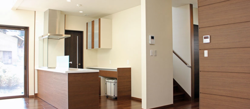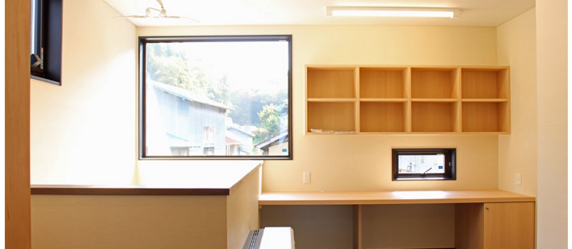 お仕事のための書斎を2階に造り、吹き抜けの大きな窓から望める裏山からは、