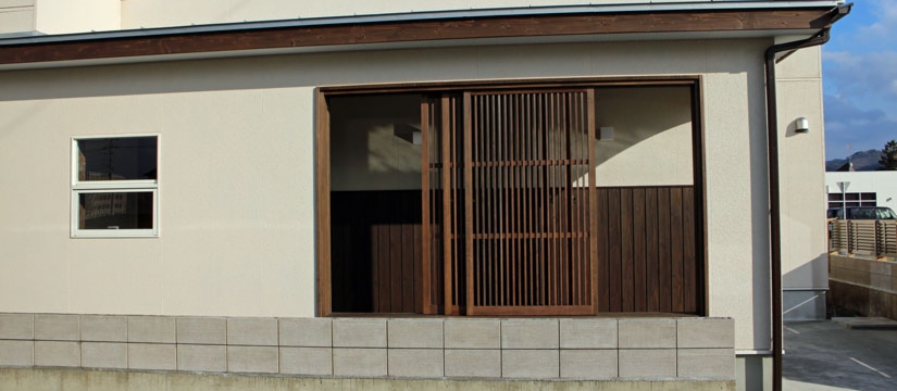 開けて良し、閉めて良し、使い勝手のある大きな3枚建ての格子戸を設けました。