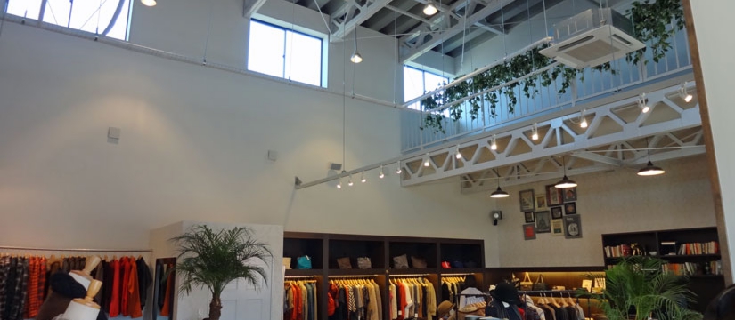 以前の施設をそのまま活かし、むき出しの構造体をベースにリノベーションした店舗です。
