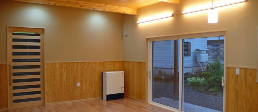 室内はナチュラルベースの塗り壁に木肌を多く見せたデザインとし、