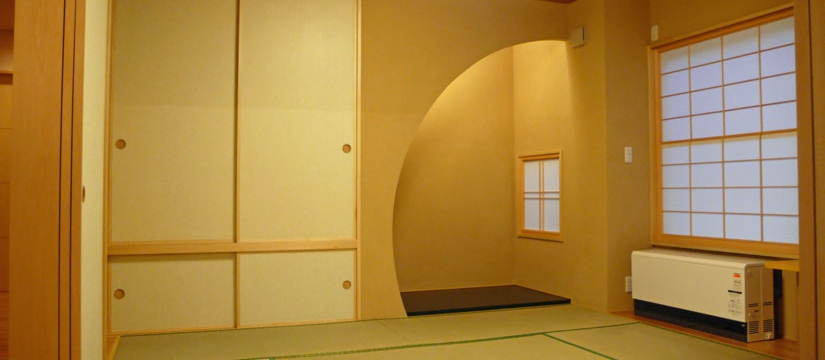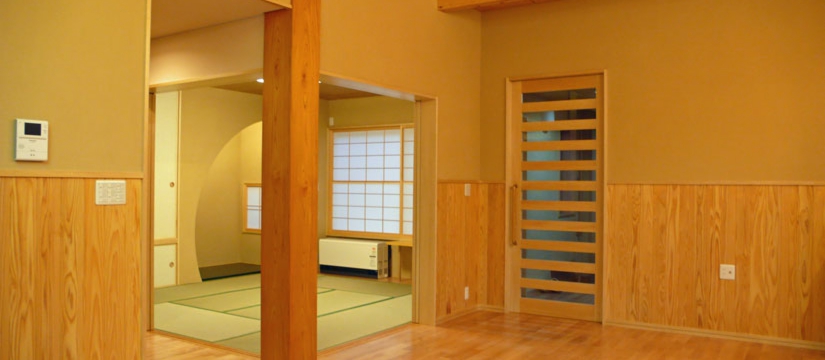 離れの母屋と同じく床には水目桜を使用させていただきました。