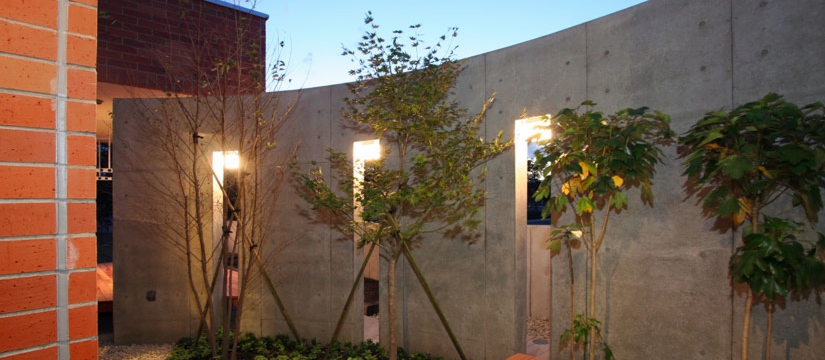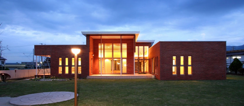 外観には、国産の素焼きレンガとコンクリート打放しのコラボにより、シンプルかつ重厚感のある